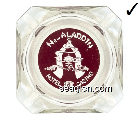 ALA-T1 Aladdin Hotel-Casino Las Vegas, NV 4 1/2" Clear Glass Ashtray White imprint: New Aladdin, Hotel, Casino |