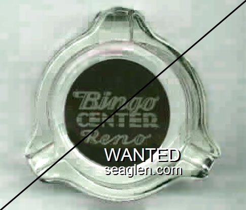 BAN-P1 Bank Club (Reno) Reno, NV 5" Clear Glass Ashtray White on black imprint: The Bank Club of Reno Nevada (SAFEX style) |