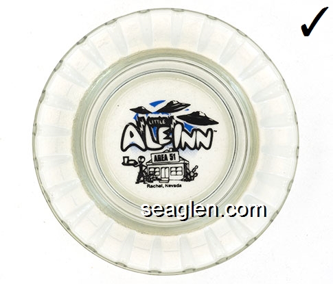 LAI-B1 Little Ale Inn Rachel, NV 3 1/2" Clear Glass Ashtray Black and blue imprint: Little Ale Inn, Area 51, Rachel, Nevada |