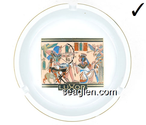 LUX-B1 Luxor Las Vegas, NV 4 7/8" White Porcelain Ashtray Blue imprint: Luxor Las Vegas, named after Upper Egypt's most exotic tourist ... complex Luxor Las Vegas, The Next Wonder of the World. |