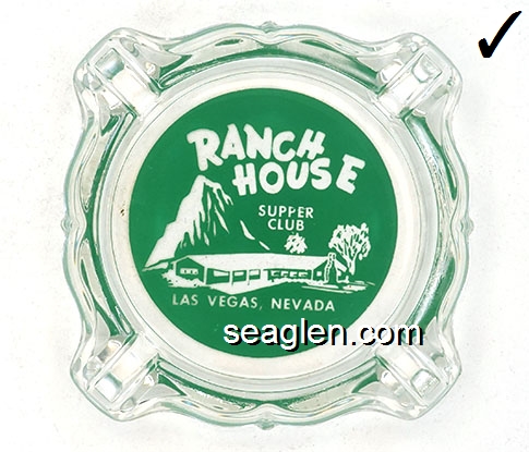 RHS-C1 Ranch House Supper Club Las Vegas, NV 4 1/2" Green Glass Ashtray Black and red on white imprint: Bob Taylor's Ranch House Supper Club, Las Vegas, Nevada |
