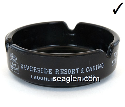 RVR-B3 Riverside Resort & Casino Laughlin, NV 3 5/8" Clear Glass Ashtray Black imprint: Don Laughlin's Riverside Resort Hotel Casino, Laughlin Nevada, ... Video Poker Machines, Luxury Tour Boat - Convention Facilities (With Best Western Logo) |