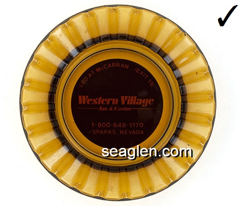 ![I-80 At McCarran [Exit 19], Western Village Inn & Casino, 1-800-648-1170, Sparks, Nevada - Orange on brown imprint Glass Ashtray](../at_pix/wev_02.jpg) WEV-02 Western Village Inn & Casino Sparks, NV 4 1/2" Amber Glass Ashtray Orange on brown imprint: I-80 At McCarran [Exit 19], Western Village Inn & Casino, 1-800-648-1170, Sparks, Nevada |