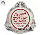 LCD-F1 Lucky Club, Joe Dini's 3 1/4" Clear Glass Ashtray "Joe Dini's Lucky Club, Yerington, Nev., Bar - Gaming" - Red on white |
