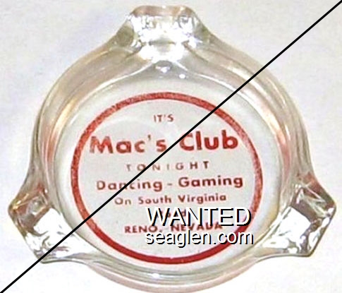 MAC-A1 Mac's Club 3 1/4" Clear Glass Ashtray "It's Mac's Club Tonight, Dancing - Gaming, On South Virginia Road, Reno, Nevada" - Red |