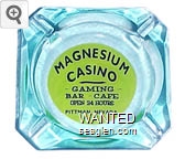 MAG-A1 Magnesium Casino 3 1/2" Blue Glass Ashtray "Magnesium Casino, Gaming - Bar - Cafe, Open 24 Hours, Pittman, Nevada" - Black on yellow |