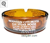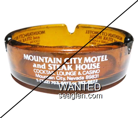 MCM-A1 Mountain City Motel 3 5/8" Amber Glass Ashtray "Mountain City Motel and Steak House, Cocktail Lounge & Casino, Mountain City, Nevada 89831, 1-(702) 763-6617 or 763-6622" - White |