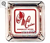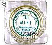 MIW-A1 Mint, Winnemucca 4 1/2" Clear Glass Ashtray "Entertainment & Gaming Around The Clock, The Mint, Winnemucca, Nevada" - Green on white |