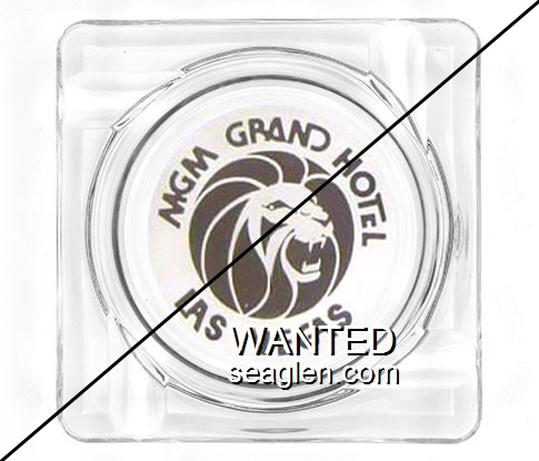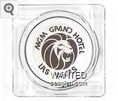 MGM-M1 MGM Grand Hotel (Las Vegas) 4 1/4" Clear Glass Ashtray "MGM Grand Hotel, Las Vegas" - Brown on white |