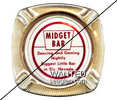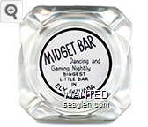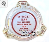 MID-01 Midget Bar 3 1/2" Clear Glass Ashtray "Midget Bar, Dancing and Gaming Nightly, Biggest Little Bar in Ely, Nevada" - Black on white |