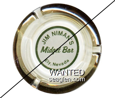 MID-A1 Midget Bar 4 1/4" Smoke Glass Ashtray "Jim Niman's Midget Bar, Ely, Nevada" - Green on white |