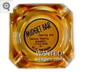MID-C1 Midget Bar 3 1/2" Amber Glass Ashtray "Midget Bar, Dancing and Gaming Nightly, Biggest Little Bar in Ely, Nevada" - Black on white |