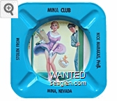 MNA-A3 Mina Club 4 1/8" Blue Metal Ashtray "Stolen From, Mina Club, Nick Marakas, Prop., Mina Nevada" - Black |