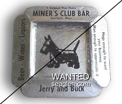 MNG-A1 Miner's Club, Gerlach 3 5/8" Silver Paper Ashtray "I Swiped This From Miner's Club Bar, Gerlach, Nev., Beer - Wines - Liquors, Jerry and Buck, Hogs enough to want your business, Men enough to appreciate it, Jerry and Buck" - Black |