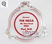 MSA-A2 Mesa, The 3 1/4" Clear Glass Ashtray "Remember The Mesa, Mt. Rose Road, Reno, Food With a View" - Red on white |