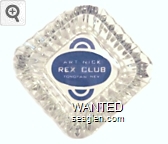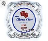 NCC-N1 New China Club 3 11/16" Clear Glass Ashtray "New China Club, 260 Lake St., Reno, Nevada" - Red and blue on white |