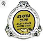 NCH-A1 Nevada Club (Hawthorne) 3 1/4" Clear Glass Ashtray "Nevada Club, Bar - Casino, Coffee Shop, Hawthorne, Nev." - Blue on yellow |