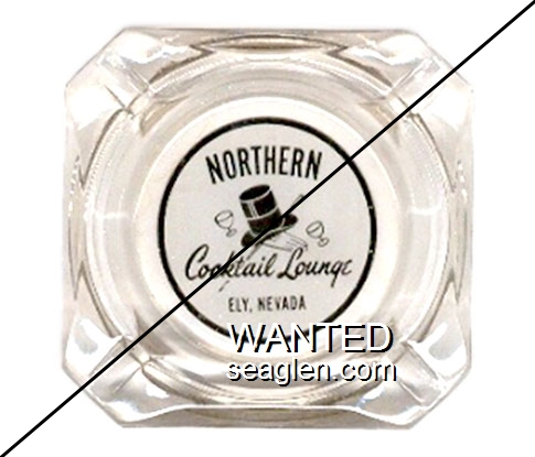 NHE-A1 Northern Hotel 3 1/2" Clear Glass Ashtray "Northern Cocktail Lounge, Ely, Nevada" - Black on white |