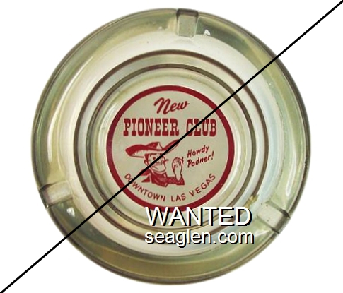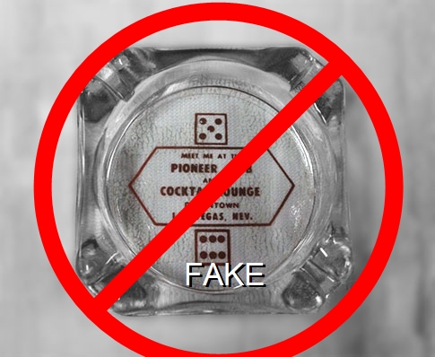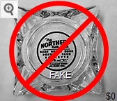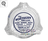 NOR-91 Northern Club 3 1/2" Clear Glass Ashtray "Northern Club & Bar, Race Horse Book, Poker - Faro, Roulette, Craps and ''21'', 15 Fremont Street, Las Vegas - Nev." - Black silkscreen (A silk screened fake, sold on eBay by seller greencOkecollector) |