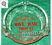 OBY-A2 Owl Bar (Yerington) ?" Clear Glass Ashtray "Whiskey - Wine - Beer, Gambling, Owl Bar, Phone 43, Angelo and Ugo, Yerington, Nevada" - Red |
