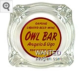 OBY-B2 Owl Bar (Yerington) 3 7/16" Clear Glass Ashtray "Gaming, Liquors - Beer - Wine, Owl Bar, Angelo & Ugo, Yerington, Nev." - Red on yellow |