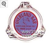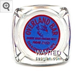 OVB-C1 Overland Bar 3 1/2" Clear Glass Ashtray "Overland Bar and Casino, Reno, ''Never a Dull Moment''" - Red on blue |