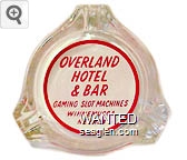 OVW-A1 Overland Bar - Winnemucca 3 1/2" Clear Glass Ashtray "Overland Hotel & Bar, Gaming Slot Machines, Winnemucca, Nevada" - Red on white |