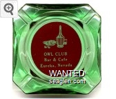 OWL-A2 Owl Club 3 1/2" Green Glass Ashtray "Owl Club, Bar & Cafe, Eureka, Nevada" - White on red |