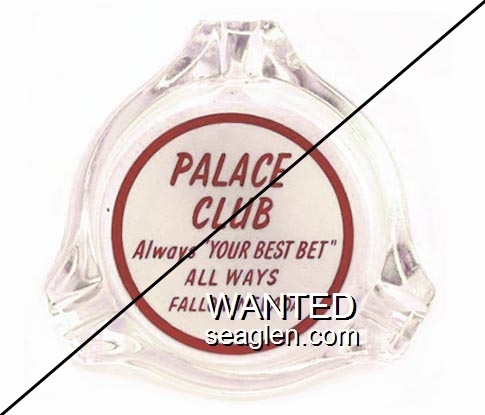 PAC-20 Palace Club (Fallon) 3 7/16" Clear Glass Ashtray "Palace Club, Always ''Your Best Bet'' All Ways, Fallon, Nevada" - Red on white |