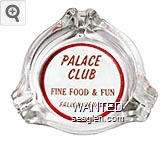 PAC-P1 Palace Club (Fallon) 3 1/2" Clear Glass Ashtray "Palace Club, Fine Food & Fun, Fallon, Nevada" - Red on white |