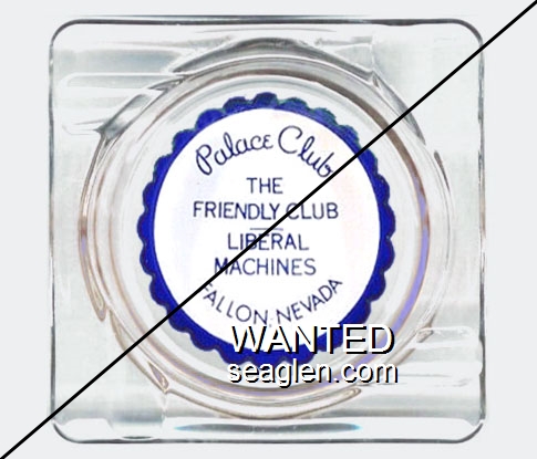 PAC-22 Palace Club (Fallon) 3 11/16" Clear Glass Ashtray "Palace Club ''Your Best Bet'' Al-ways, Fallon, Nevada" - Blue |