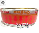PLA-C1 Union Plaza Hotel & Casino 3 1/2" Clear Glass Ashtray "Union Plaza, Las Vegas" - Yellow and red |