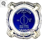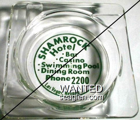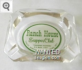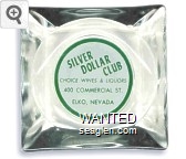 SWK-A1 Swanky Club 3 1/2" Clear Glass Ashtray "Bob and Pearl Greet You ..., Swanky Club, Smorgasbord Dinners, Bar and Casino, Between Boulder City and Pittman" - Green on white |