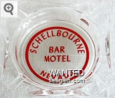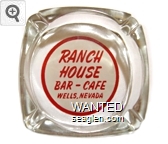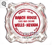 WWC-B3 Wagon Wheel Motel-Casino 4 1/4" Clear Glass Ashtray "Wagon Wheel, Wells Nevada, Gaming Lounge Cafe, Motel Hotel" - Red on white |