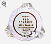MOA-A1 Moana Coffee Shop 3 1/4" Clear Glass Ashtray "Your Hostess - Grace Davis, Moana Coffee Shop, Reno, Nevada, South Virginia Road" - Red on white |