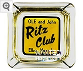 OWL-A4 Owl Club 3 1/2" Smoke Glass Ashtray "Owl Club, Bar & Cafe, Eureka, Nevada" - White on red |