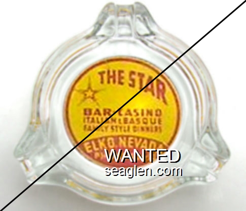 SBC-E1 Star Bar Casino 3 1/2" Clear Glass Ashtray "The Star Bar - Casino, Italian & Basque Family Style Dinners, Elko, Nevada, Phone - 406W" - Red on yellow |