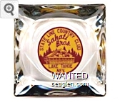 TSC-A1 Twin States Club 3 1/2" Clear Glass Ashtray "At the South End of Lake Tahoe, Twin States Club, Stateline - Nevada" - Blue on white |