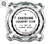SCC-S1 Stateline Country Club 3 11/16" Clear Glass Ashtray "On the South Shore of Lake Tahoe, Stateline Country Club, U.S. Hwy. 50, Stateline, Nevada, Dining - Dancing - Gaming - Cocktails" - Black on white (Like SCC-02, except black on white imprint) |