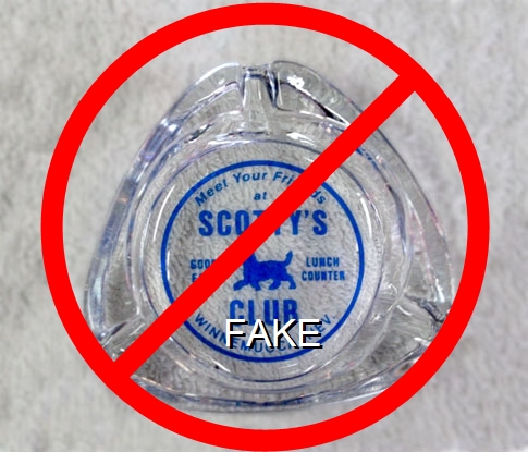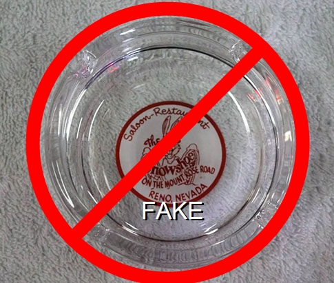 UST-91 US 40 Tavern 4" Clear Glass Ashtray "Where Good Pals Meet, US 40 Tavern, 640 E. 4th St. Reno, Nev., Al - Ray - Bing, Home of Western Music" - Red silkscreen (A silk screened fake, sold on eBay by seller greencOkecollector) |