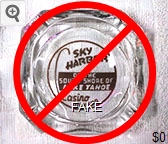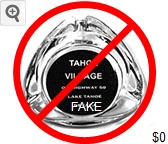 TAV-91 Tahoe Village 3 1/2" Clear Glass Ashtray "Tahoe Village, On Highway 50, Lake Tahoe, Nevada" - Clear thru black (A silk screened fake, sold on eBay by seller greencOkecollector) |