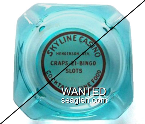 SKY-E1 Skyline Casino & Restaurant 3 1/2" Smoke Glass Ashtray "Skyline, Casino Restaurant, Henderson, Nevada, Packaged Liquor, Cocktails, Restaurant, Slots, Poker,''21''" - Violet |