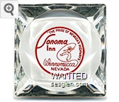 SOI-D3 Sonoma Inn 3 1/2" Clear Glass Ashtray "''The Pride of Nevada's Highways'', Sonoma Inn, Winnemucca Nevada" - Red on white |