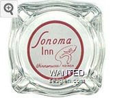 SOI-F1 Sonoma Inn 3 1/2" Clear Glass Ashtray "''The Pride of Nevada's Highways'', Sonoma Inn, Winnemucca Nevada" - Red on white |