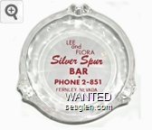 WHB-A1 White Horse Bar 3 1/4" Clear Glass Ashtray "White Horse Bar, S. Virg. Road, Reno" - White on black |