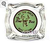 STG-B1 Stag Bar 3 7/16" Clear Glass Ashtray "At the Arch, The Stag Bar, Reno, Nevada" - Brown on green |