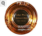 STO-E1 Stockmen's Hotel ?" Amber Glass Ashtray "Jackpot Winner, Stockmen's Hotel, Elko, Nevada" - White on black |