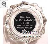STO-N1 Stockman's Bar & Restaurant 3 3/4" Clear Glass Ashtray "Stolen From Stockman's Club, Hwy. 95 and 50, Fallon, Nevada" - White on black |