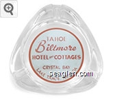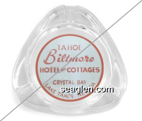 TAB-D1 Tahoe Biltmore Lodge & Casino 3 1/2" Clear Glass Ashtray "Tahoe Biltmore Hotel and Cottages, Crystal Bay, Lake Tahoe, Nevada" - Red on white |