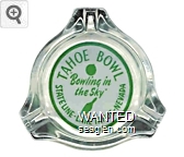 TBL-A1 Tahoe Bowl 3 1/2" Clear Glass Ashtray "Tahoe Bowl, ''Bowling in the Sky'', Stateline - Lake Tahoe - Nevada" - Green on white |